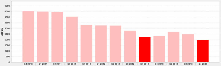 In November I wrote about how the inventory of Chicago 1 bedroom condos for sale dropped 12.3% in the third quarter of 2013. The inventory in the fourth quarter was down over 56% from fourth quarter 2010.